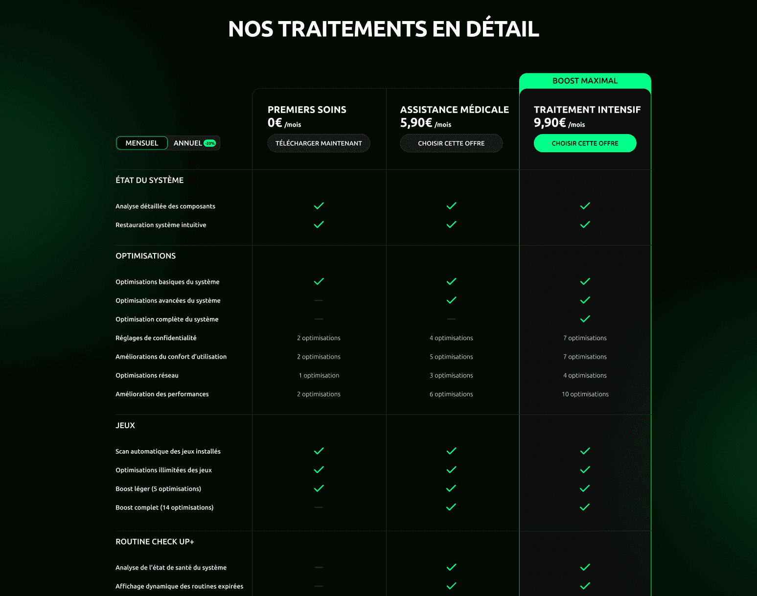 Nous avons conçu une interface inspirée des codes actuels du gaming, en harmonie avec la direction artistique du logiciel. L’objectif : une expérience fluide, visuelle et orientée conversion.